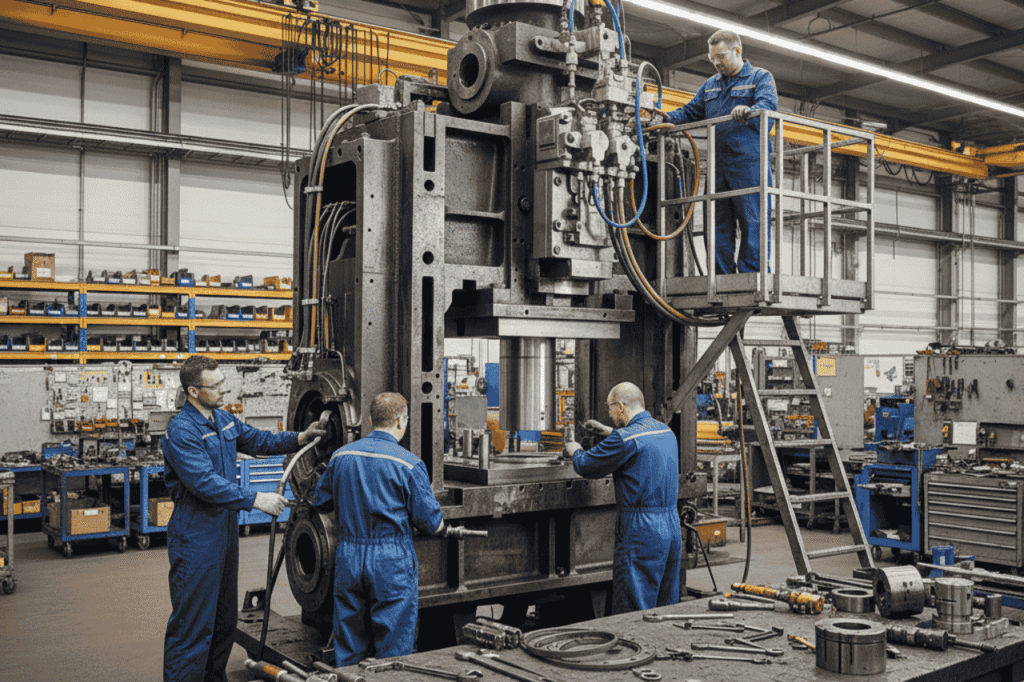 Hydraulic press refurbishing restores equipment to peak operating condition, extending service life while ensuring consistent performance across demanding industrial applications. This comprehensive process enhances operational efficiency, reliability, and safety. Through detailed inspection and precision engineering, experienced technicians refurbish critical systems, replace worn components, and integrate modern technologies to improve output while ensuring compliance with current industry standards.